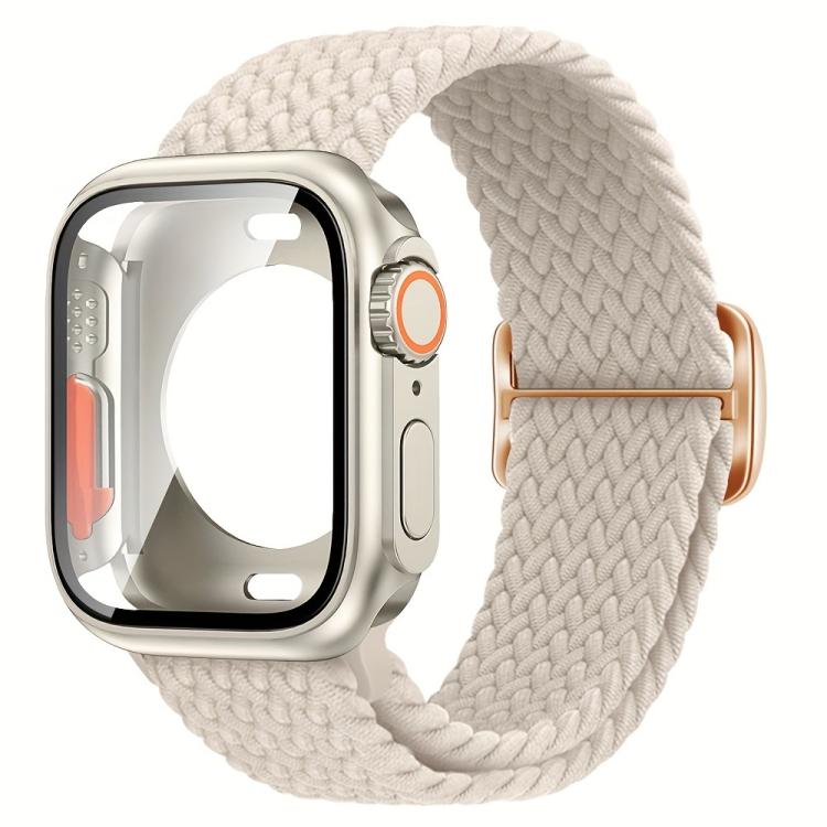 Correa de nailon con hebilla de escalera para Apple Watch Series 45 mm, con funda de PC con película Ultra de 49 mm (Starlight)