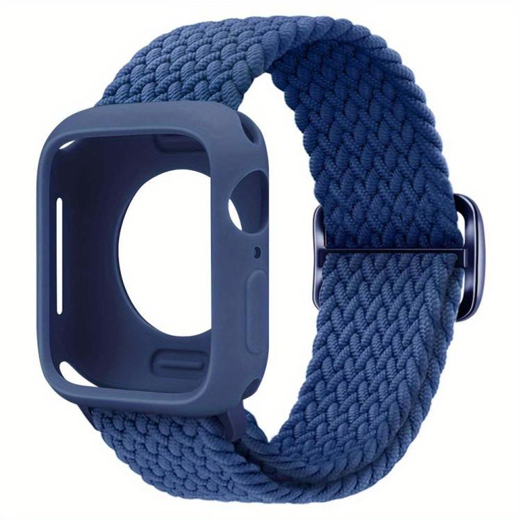 Correa de nailon con hebilla de escalera y funda de silicona para Apple Watch de 40 mm/41 mm (azul oscuro)