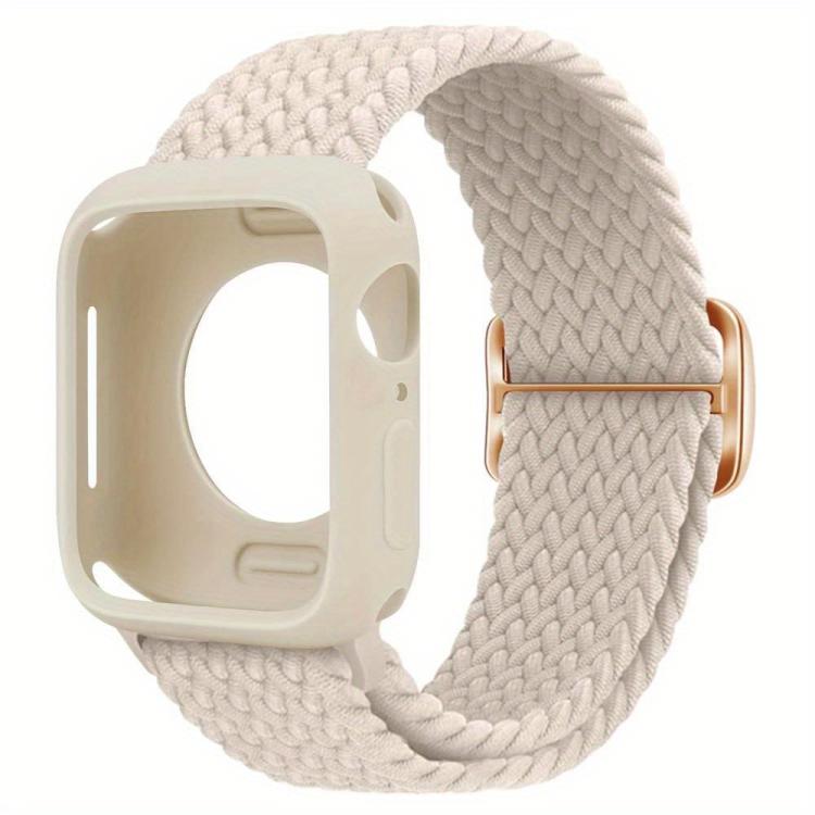 Correa de nailon con hebilla de escalera y funda de silicona para Apple Watch de 40 mm/41 mm (Starlight)