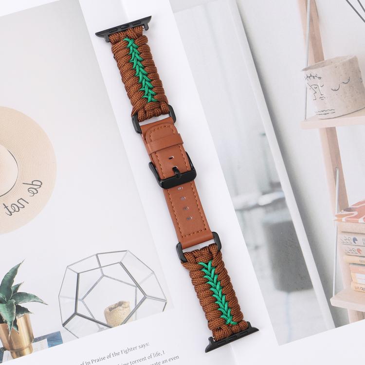 Correa de nailon Paracord con doble hebilla de cuero para Apple Watch de 46 mm, 49 mm, 45 mm y 44 mm (marrón)