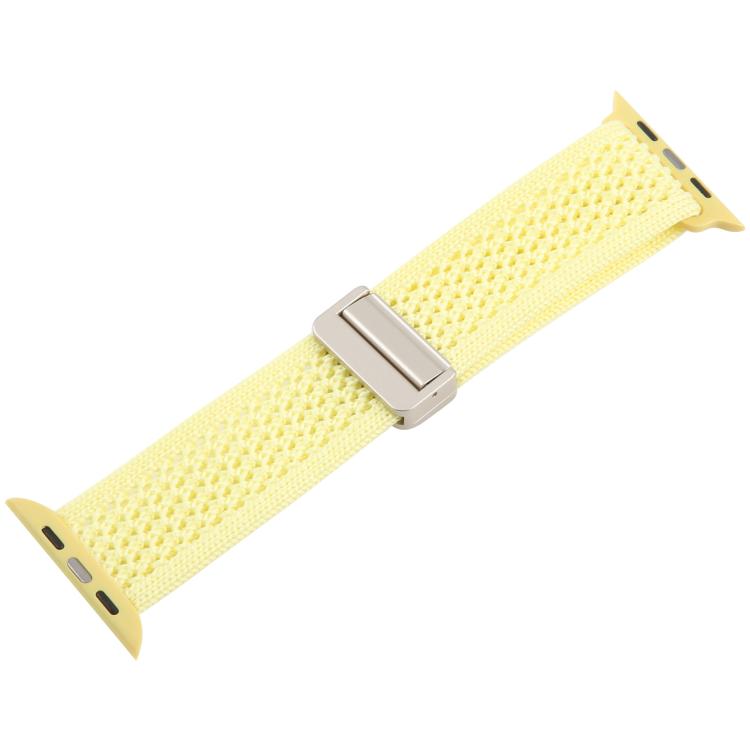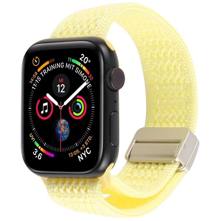 Correa de nailon transpirable con hebilla magnética para Apple Watch de 42 mm, 41 mm, 40 mm y 38 mm (amarillo claro)