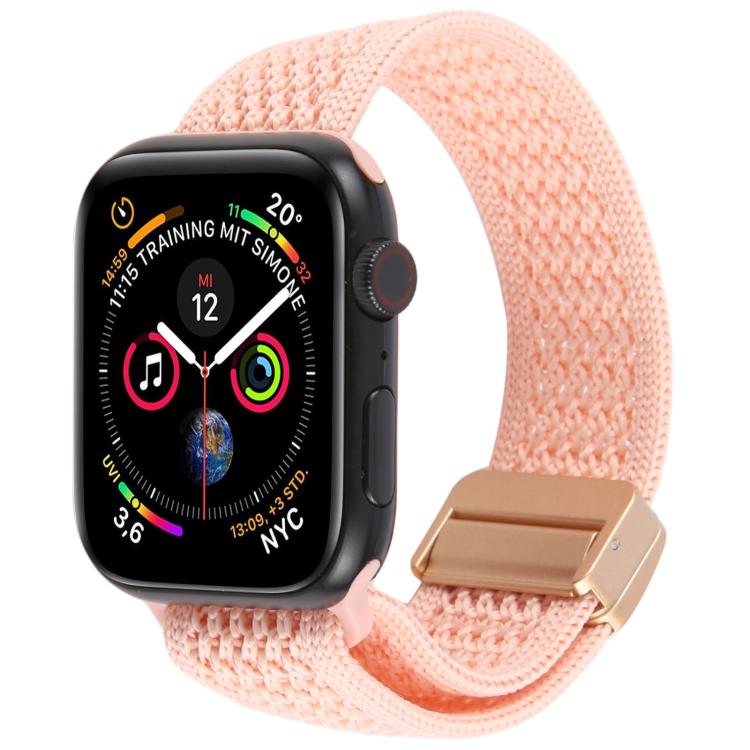 Correa de nailon transpirable con hebilla magnética para Apple Watch de 42 mm, 41 mm, 40 mm y 38 mm (color arena rosa oscuro).