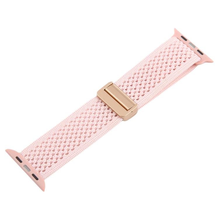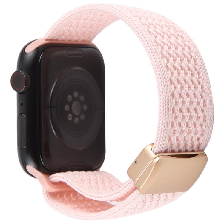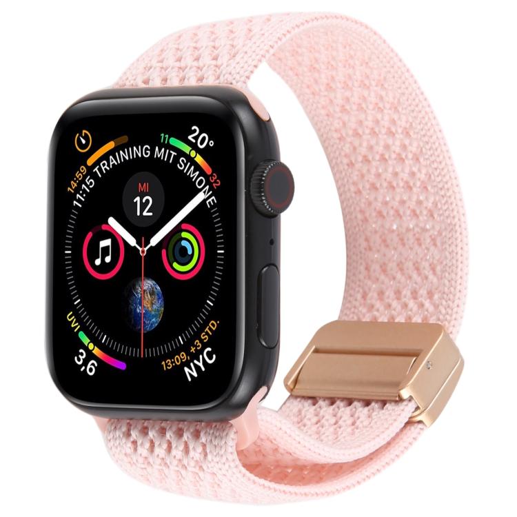 Correa de nailon transpirable con hebilla magnética para Apple Watch de 46 mm, 49 mm, 45 mm y 44 mm (color arena rosa).