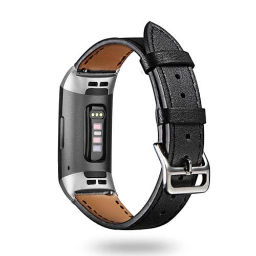 Correa de piel de vacuno para Fitbit Charge 6/5 (línea negra)