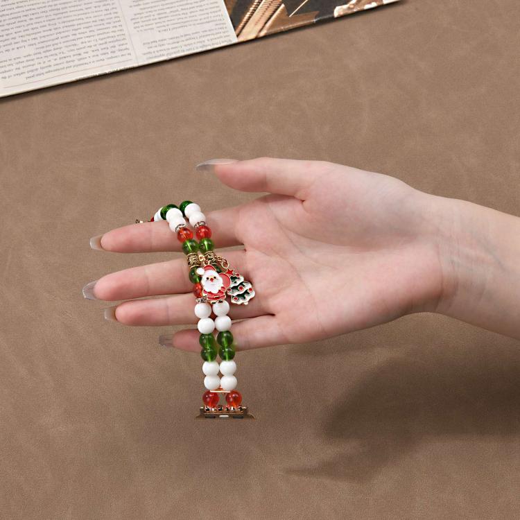 Correa de reloj con cadena de cuentas navideñas de 20 mm de ancho para Apple Watch de 46 mm / 49 mm / 45 mm / 44 mm (rojo, verde y blanco).