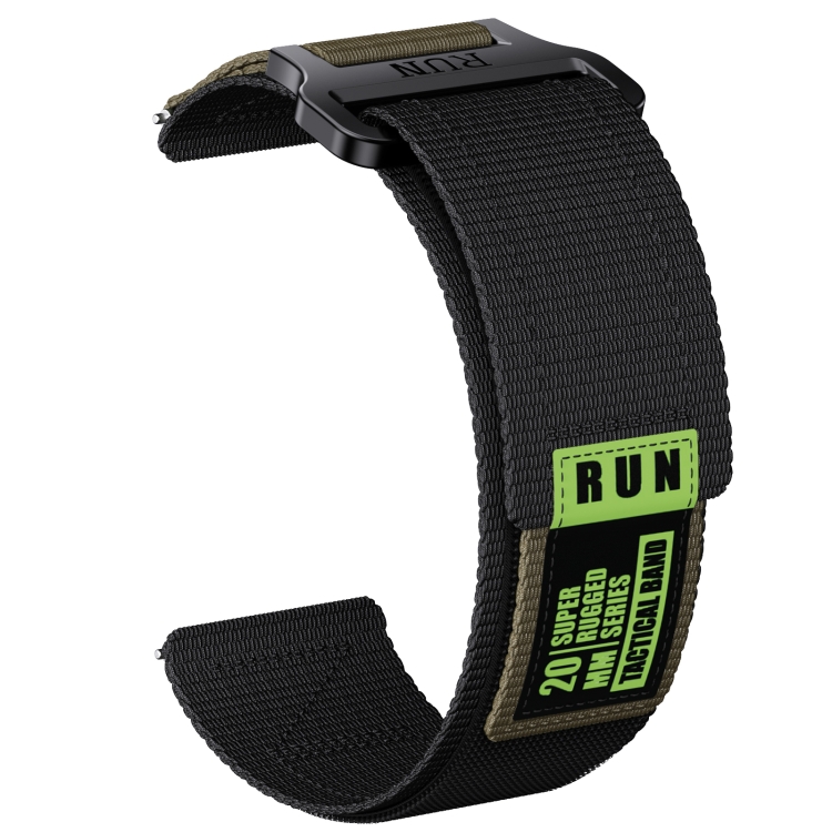 Correa de Reloj Lona Nailon 20mm con Cierre Gancho y Bucle (Negro + Verde)