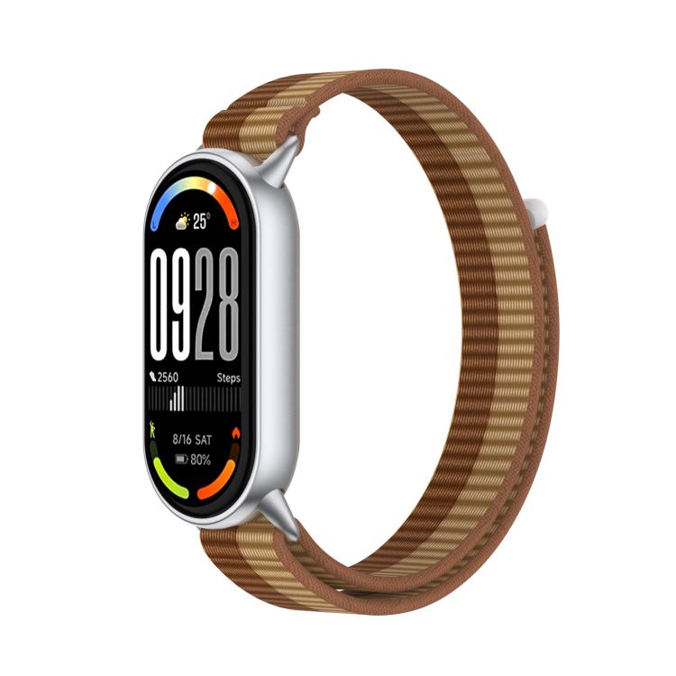 Correa de reloj con cierre de velcro de nailon integrado para Xiaomi Smart Band 10/9/8 (marrón)