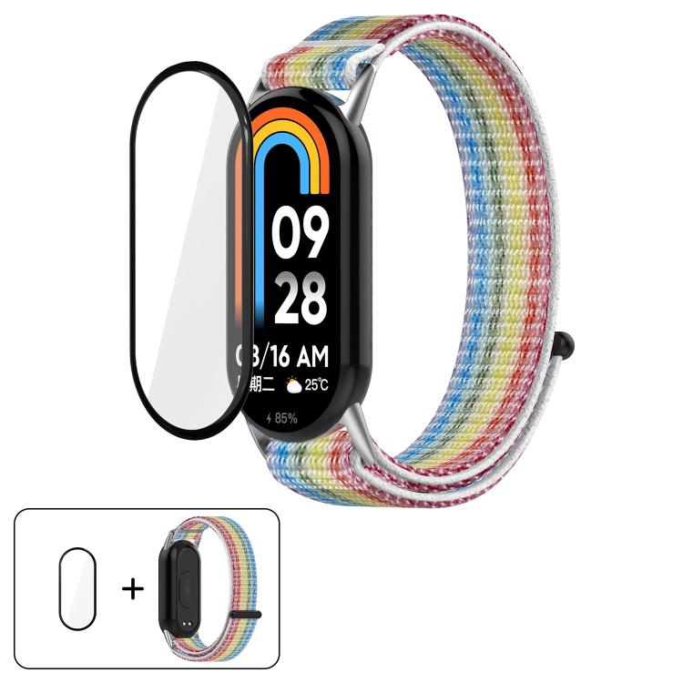 Correa de reloj con cierre de velcro de nailon y película curva 3D para Xiaomi Smart Band 9/9 NFC (arcoíris)