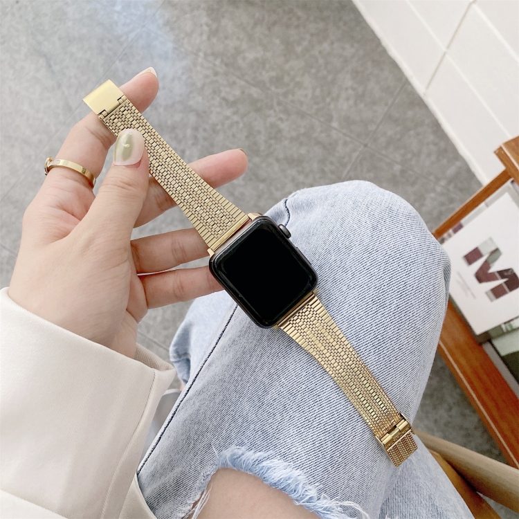 Correa de Reloj Acero Tres Líneas para Apple Watch Ultra 49mm Serie 8 7 SE 2 6 5 4 3 2 1 (Dorado)