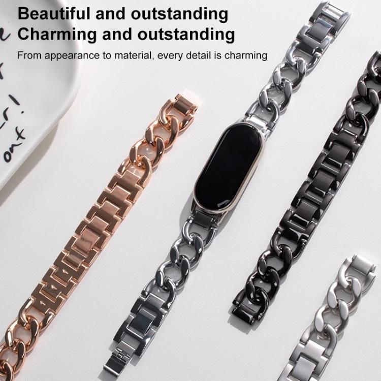 Correa de reloj de acero inoxidable con cadena vaquera de una sola fila xDfind para Xiaomi Smart Band 10/9/8 (dorada)