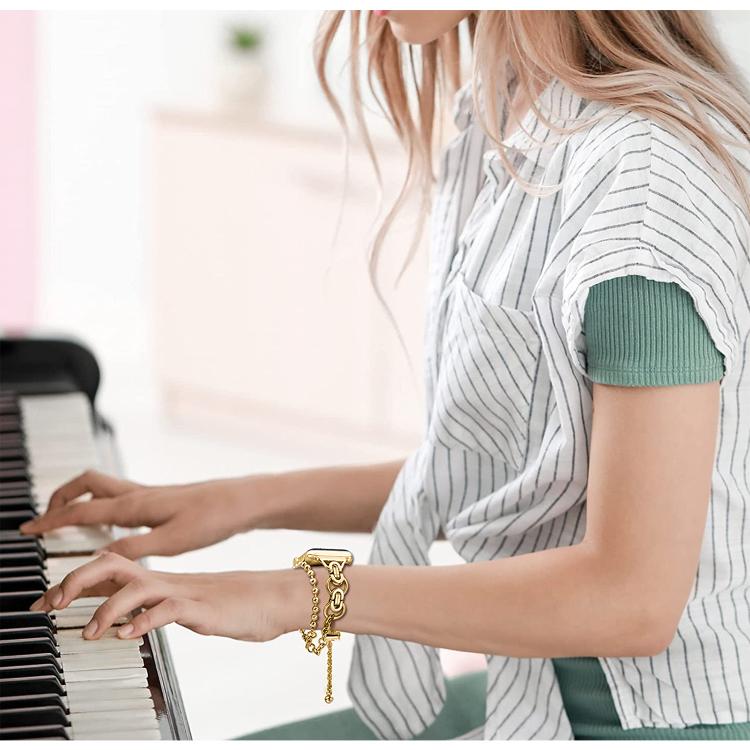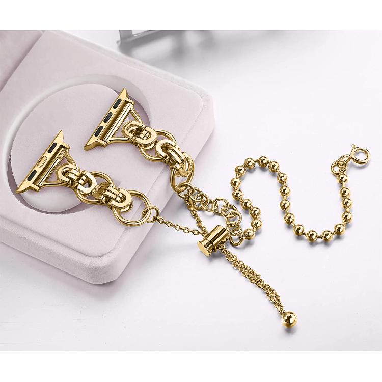 Correa de reloj de aleación de zinc con cadena de cuentas de doble círculo para Apple Watch de 42 mm, 41 mm, 40 mm y 38 mm (dorada)