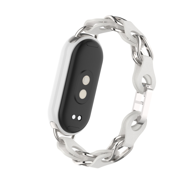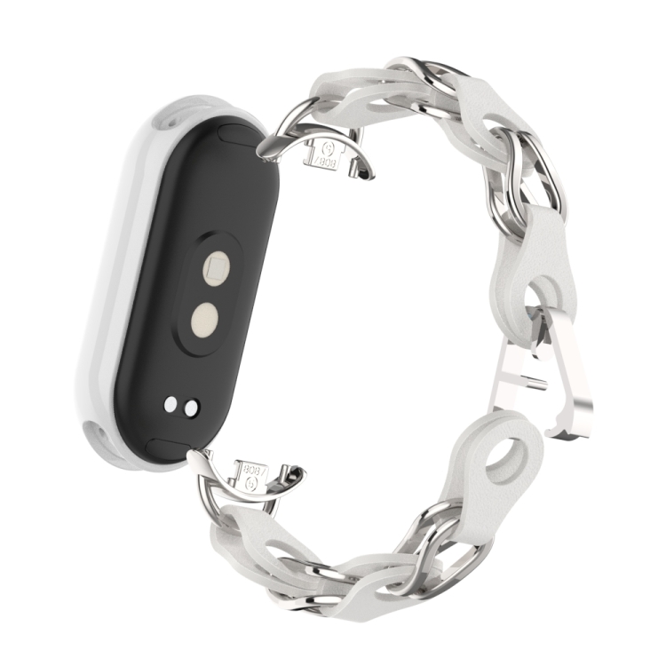 Correa de Reloj Cadena Cuero Metal Hueco para Xiaomi Smart Band 9 (Blanco)