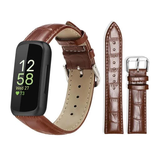 Correa de reloj de cuero con hebilla de pasador y textura de bambú para Fitbit Inspire 3 de 12 mm (marrón oscuro)