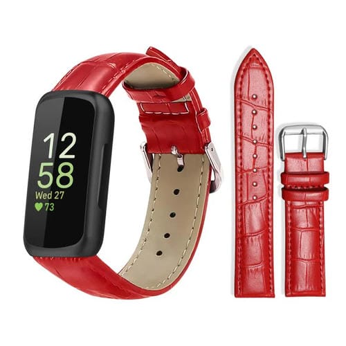 Correa de reloj de cuero con hebilla de pasador y textura de bambú para Fitbit Inspire 3 de 12 mm (roja)