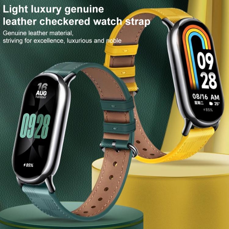 Correa de reloj de cuero con textura a cuadros xDfind para Xiaomi Smart Band 10/9/8 (albaricoque)