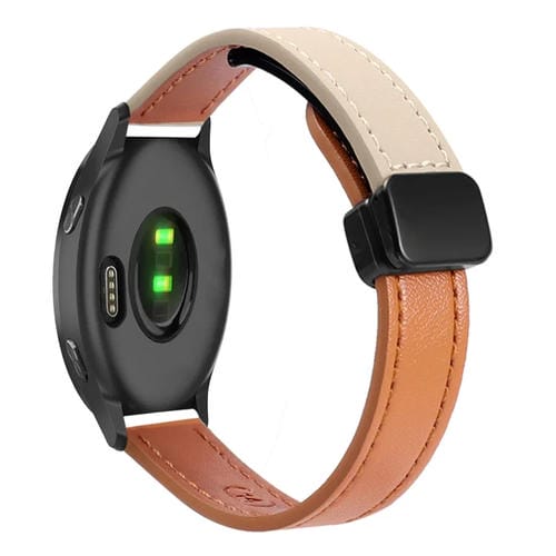 Correa de Reloj Cuero Microfibra 20mm Garmin Venu Slim Hebilla Magnética (Naranja Aima y Albaricoque Crema)