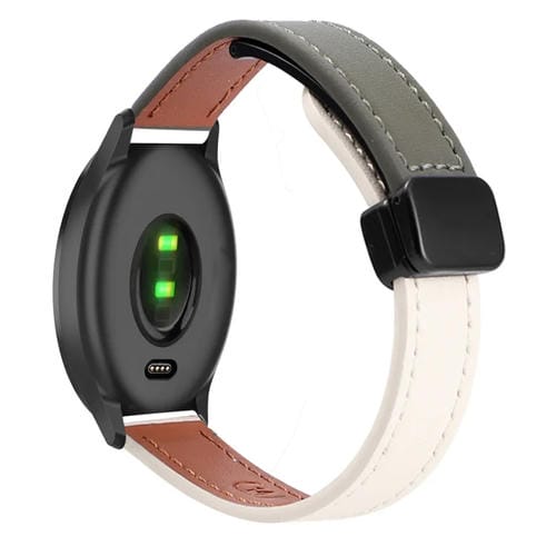 Correa de Reloj Cuero Microfibra 20mm Garmin Vivomove Hebilla Magnética (Verde Albaricoque y Aguacate)
