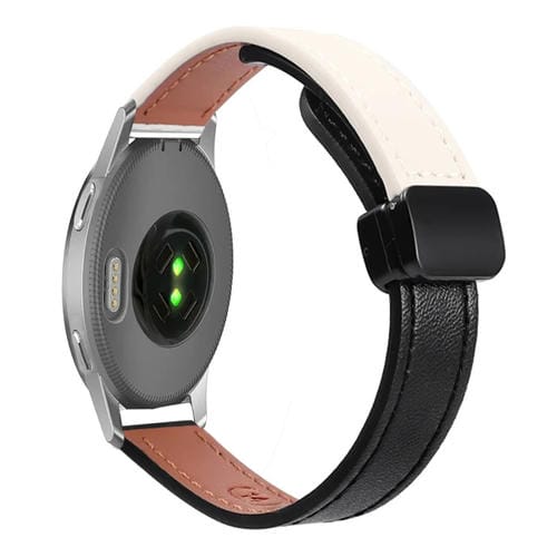 Correa de Reloj de Cuero Microfibra con Hebilla Magnética 18mm para Garmin Venu 2S (Negro y Albaricoque)