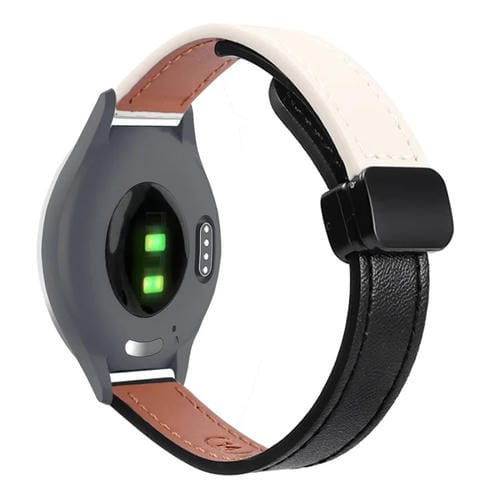 Correa de Reloj de Cuero Microfibra con Hebilla Magnética 18mm para Garmin Vivoactive 4S (Negro y Albaricoque)