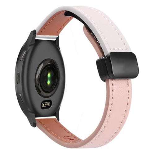 Correa de Reloj de Cuero Microfibra con Hebilla Magnética 20mm para Garmin Venu 2 Plus (Rosa y Albaricoque)