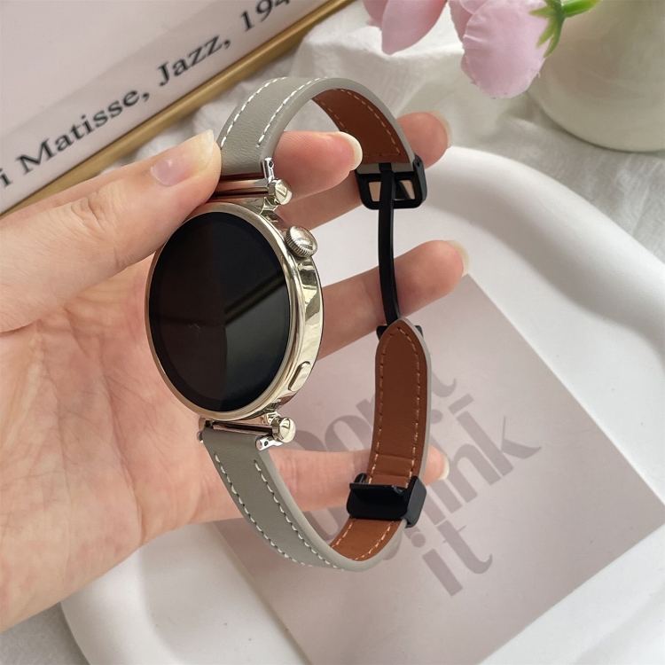 Correa de Reloj Cuero Microfibra Garmin Forerunner 255 Hebilla Magnética 22mm (Gris)