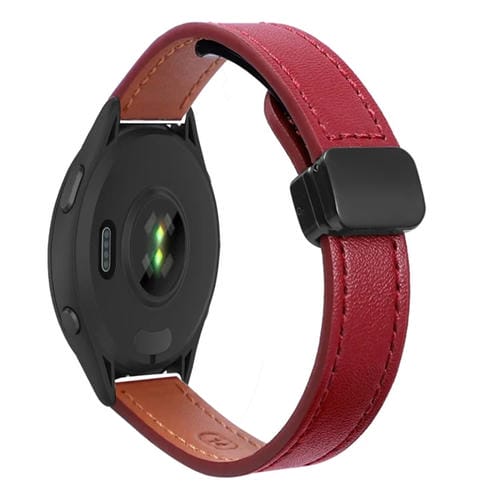 Correa de Reloj Cuero Microfibra Garmin Forerunner 265 Music 22mm (Rojo Vino)