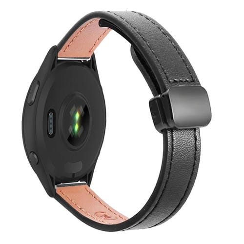Correa de Reloj Cuero Microfibra Garmin Forerunner 265 Hebilla Magnética 22mm (Negra)