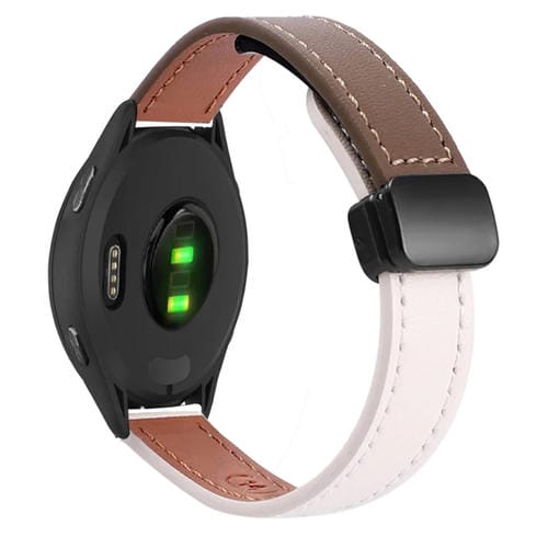 Correa de Reloj Cuero Microfibra 22mm con Hebilla Magnética para Garmin Vivoactive 4 (Albaricoque y Caramelo Macchiato)