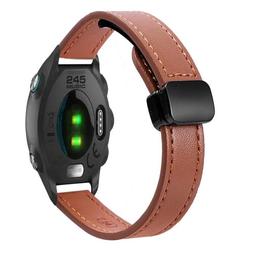 Correa de Reloj de Cuero Microfibra 20mm con Hebilla Magnética para Garmin Forerunner 245 (Marrón Moca)