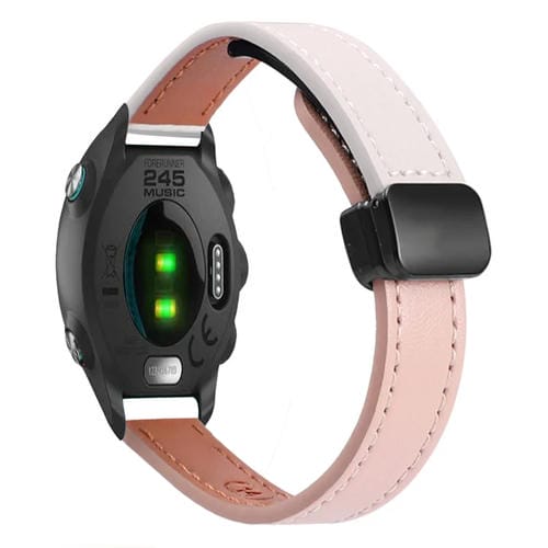 Correa de Reloj de Cuero Microfibra 20mm con Hebilla Magnética para Garmin Forerunner 245 (Rosa y Albaricoque)