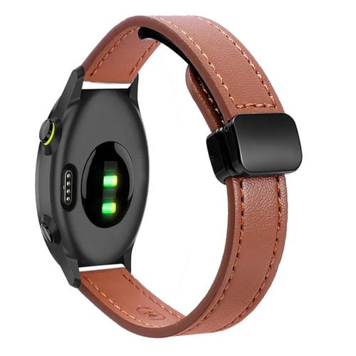 Correa de Reloj Cuero Microfibra 20mm con Hebilla Magnética para Garmin Forerunner 55 (Marrón Moca)
