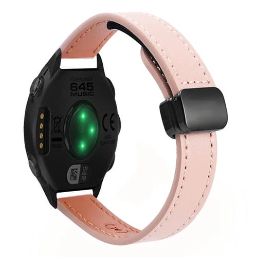 Correa de Reloj de Cuero Microfibra 20mm con Hebilla Magnética para Garmin Forerunner 645 (Rosa Sakura)