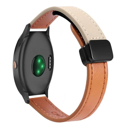 Correa de Reloj de Cuero Microfibra 20mm con Hebilla Magnética para Garmin Vivoactive 3 Music (Naranja Aima + Albaricoque Crema)