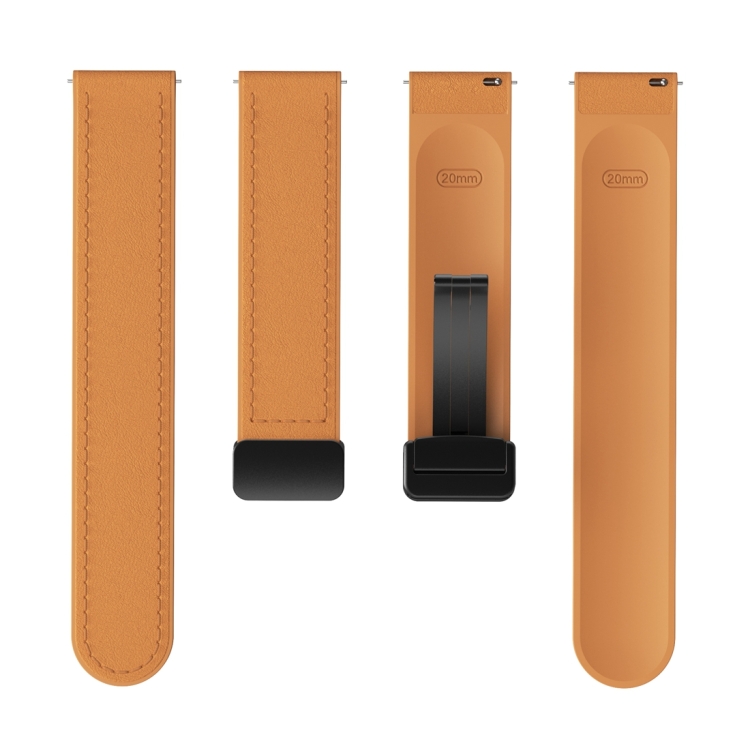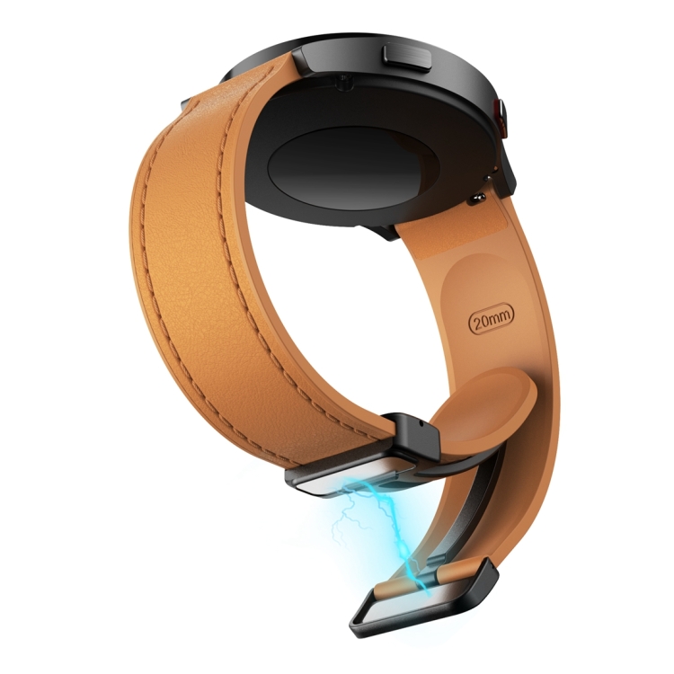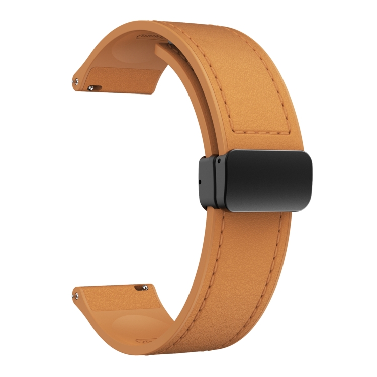 Correa de Reloj de Cuero Silicona 20mm con Hebilla Negra Magnética (Marrón Claro)