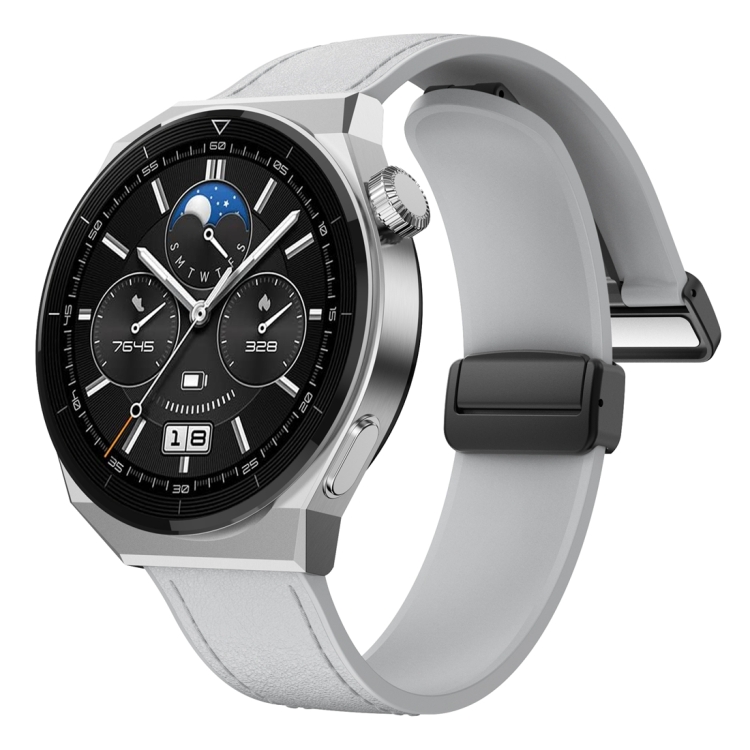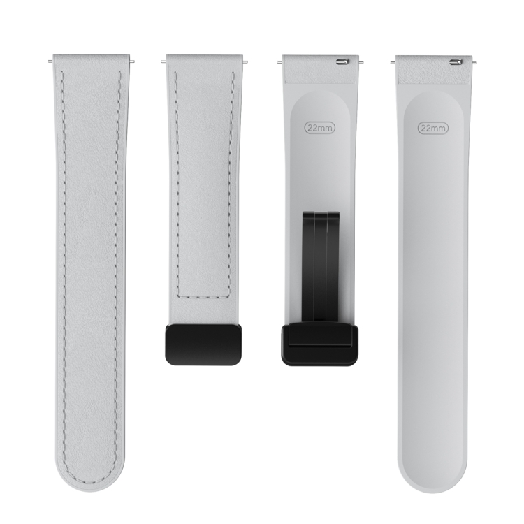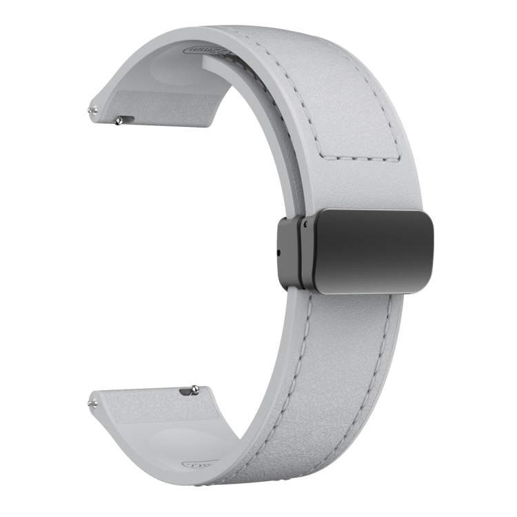 Correa de Reloj de Cuero y Silicona 22mm con Hebilla Magnética Negra (Gris)