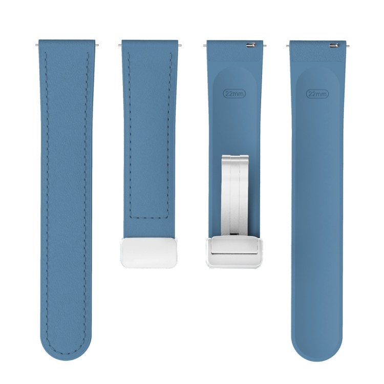 Correa de Reloj de Cuero y Silicona con Hebilla Magnética Plateada 22mm (Azul)