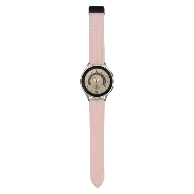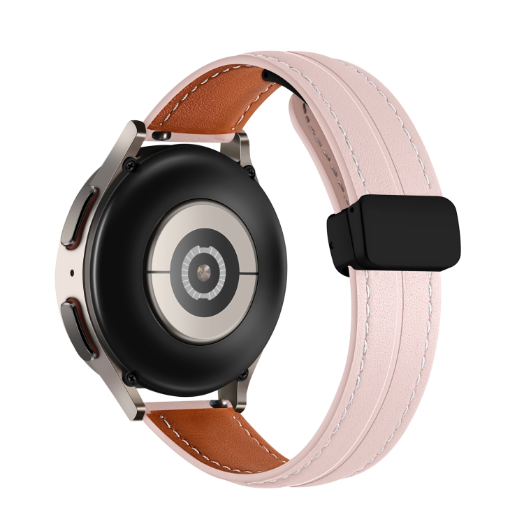 Correa de Reloj Cuero Genuino Acanalado 20mm Hebilla Plegable (Rosa Claro)
