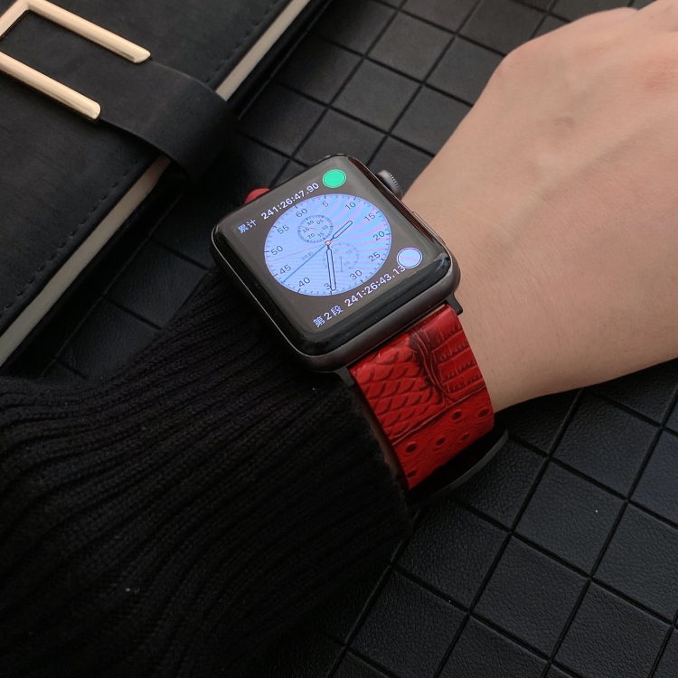 Correa de Reloj Cuero Genuino Cocodrilo y Avestruz para Apple Watch Series 8 7 SE 6 5 4 3 2 1 (Rojo)