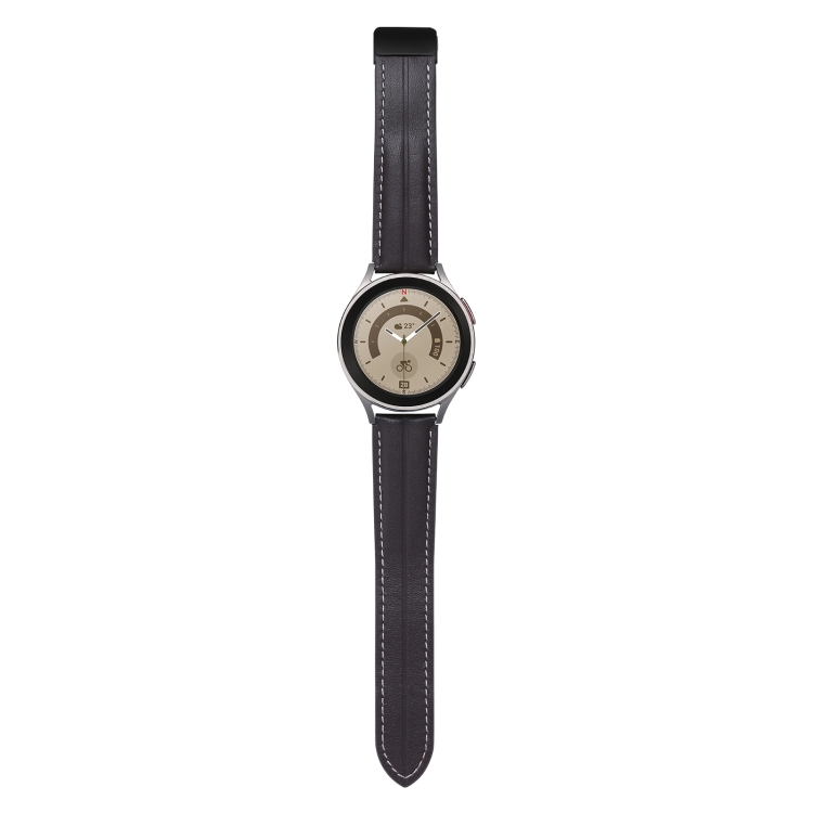 Correa de Reloj de Cuero Genuino Ranurado 20mm con Hebilla Plegable Negra (Café)