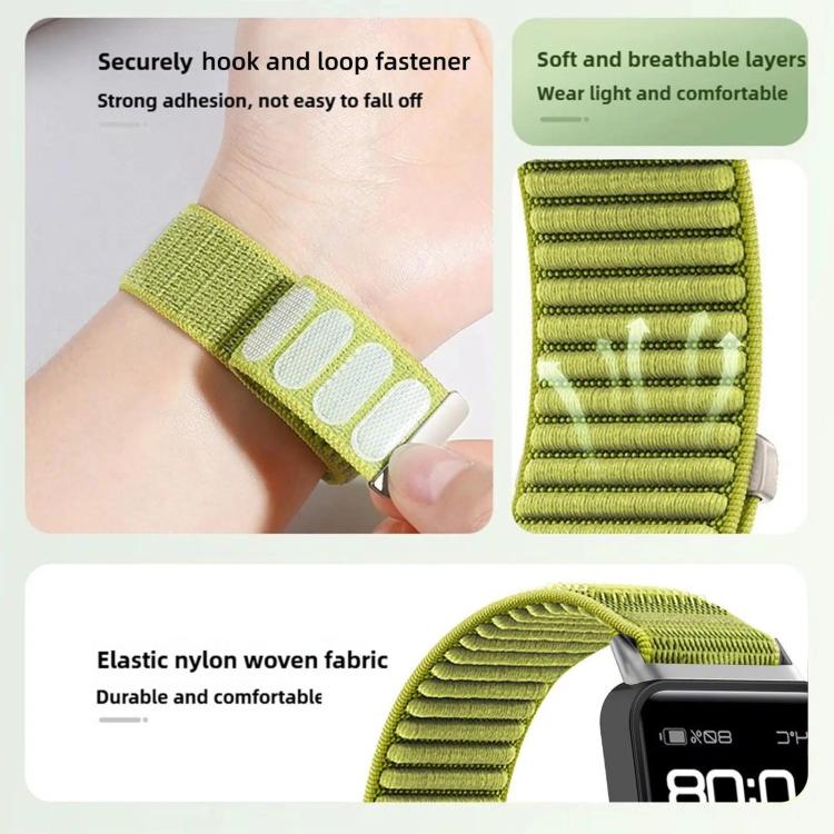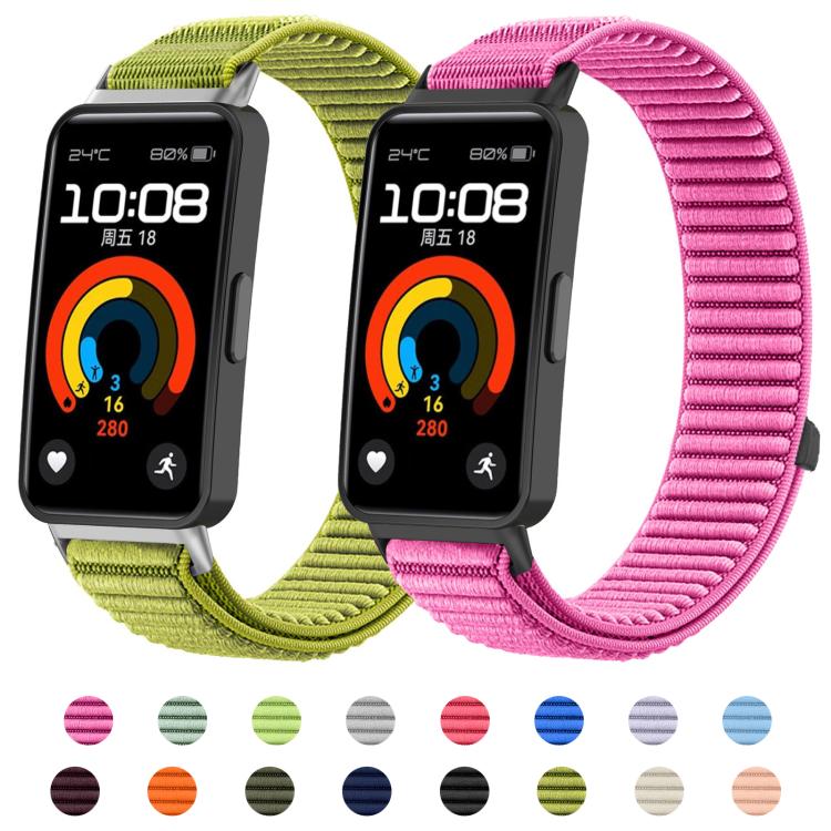 Correa de reloj de nailon tejido con cierre de velcro y interfaz metálica para Huawei Band 10/9/8 (color ciruela)