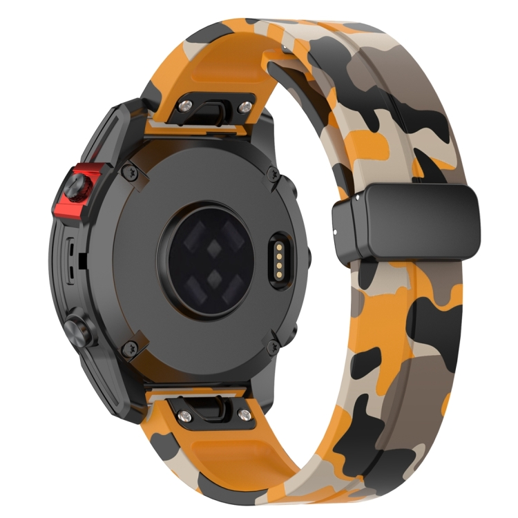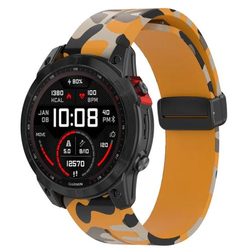 Correa de Reloj Silicona Garmin Fenix 7 Estampado Amarillo Camuflaje Hebilla Magnética