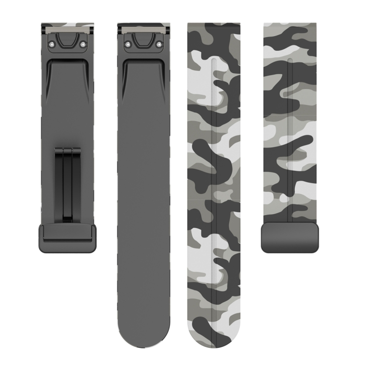 Correa de Reloj de Silicona con Estampado de Color y Hebilla Negra Plegable Magnética para Garmin Fenix 7 (Blanco Camuflaje)