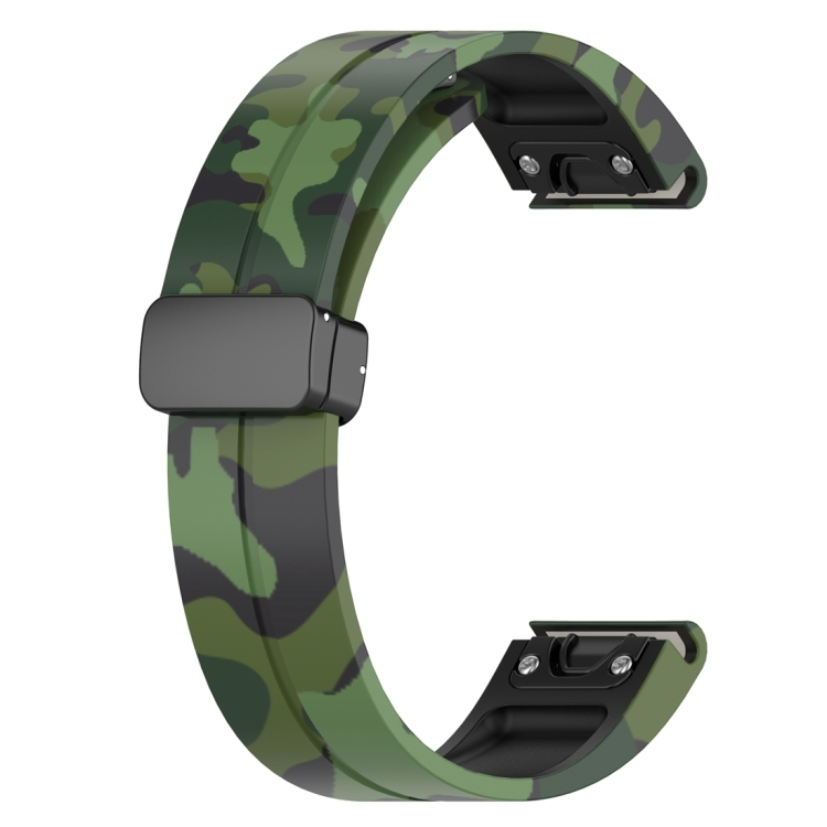 Correa de Reloj Silicona Garmin Fenix 7S Hebilla Negra Plegable Magnética (Verde Camuflaje)