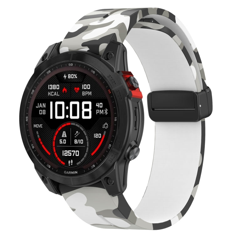 Correa de Reloj de Silicona Garmin Fenix 7X Estampado Color Hebilla Negra Magnética (Blanco Camuflaje)