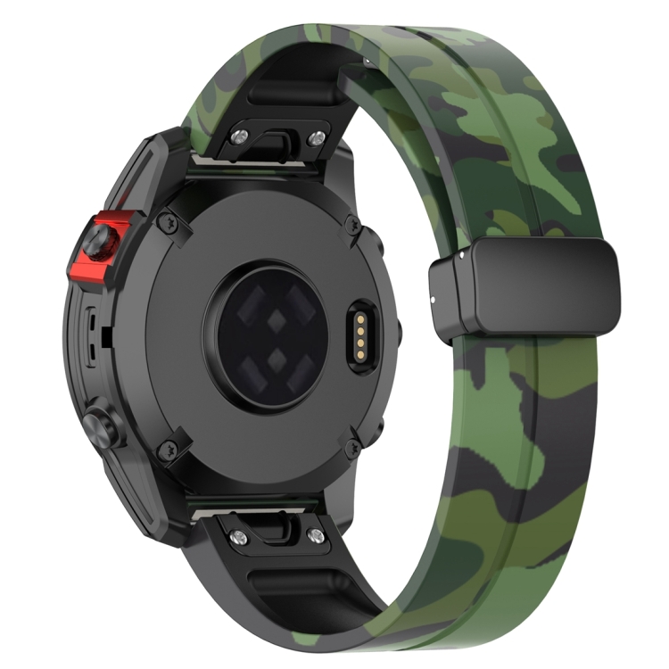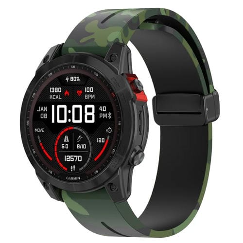 Correa de Reloj Silicona Garmin Fenix 7X Estampado Color Hebilla Plegable Magnética (Verde Camuflaje)