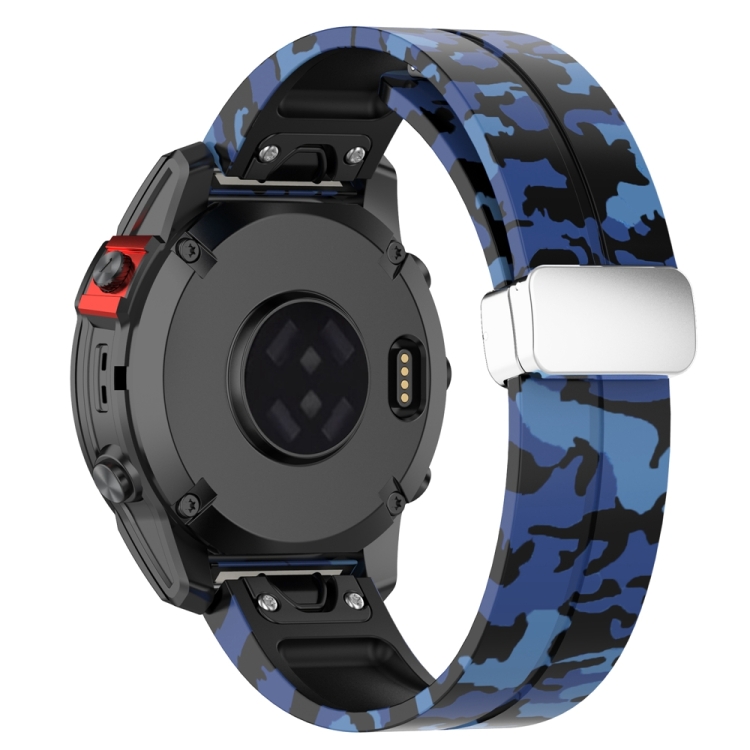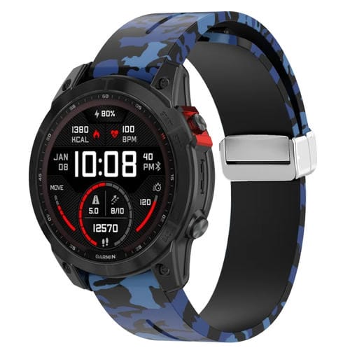 Correa de Reloj Silicona Garmin Fenix 7 Estampado Color Hebilla Plegable Magnética (Azul Camuflaje)