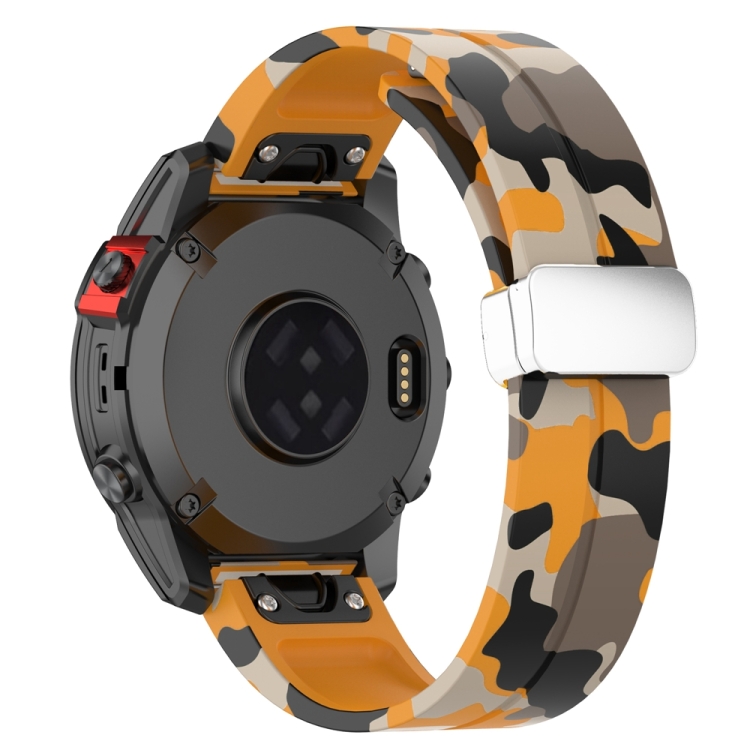 Correa de Reloj Silicona Garmin Fenix 7S Estampado Amarillo Camuflaje Hebilla Magnética