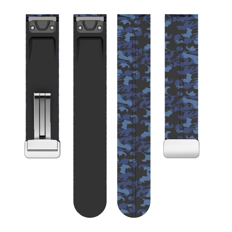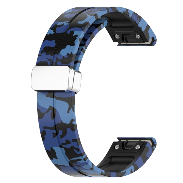 Correa de Silicona para Garmin Fenix 7X con Hebilla Plegable Magnética (Azul Camuflaje)