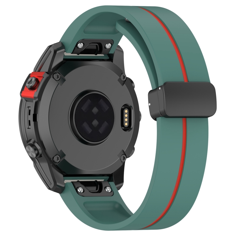 Correa de Reloj Silicona Garmin Fenix 7 Hebilla Negra Plegable Magnética (Verde Oliva y Rojo)