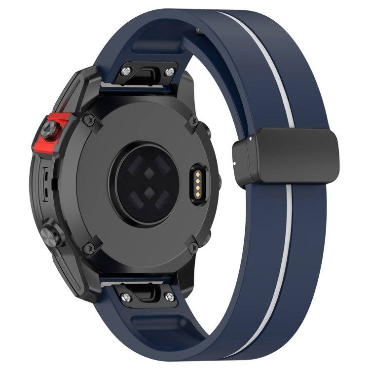 Correa de Reloj Silicona Garmin Fenix 7S Hebilla Negra Plegable Magnética (Azul Medianoche y Blanco)